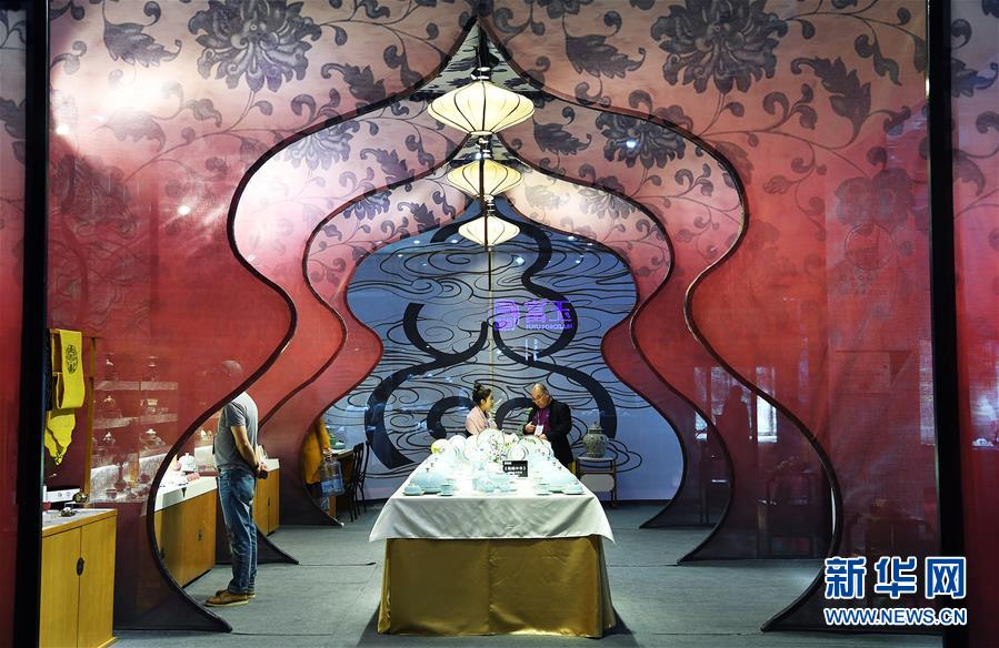 參觀者在參觀中國景德鎮(zhèn)國際陶瓷博覽會的展臺(2018年10月18日攝)。新華社記者 萬象 攝