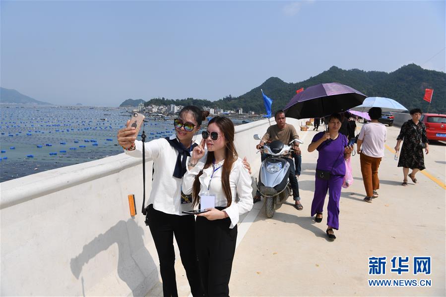 10月12日,福建省霞浦縣東安島海防大橋正式通車,當?shù)厝罕娗皝眢w驗新橋帶來的便利。新華社記者姜克紅攝