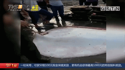 巨型“魔鬼魚(yú)”驚現(xiàn)碼頭,300斤!8名壯漢才能拖動(dòng)?。ㄒ曨l)