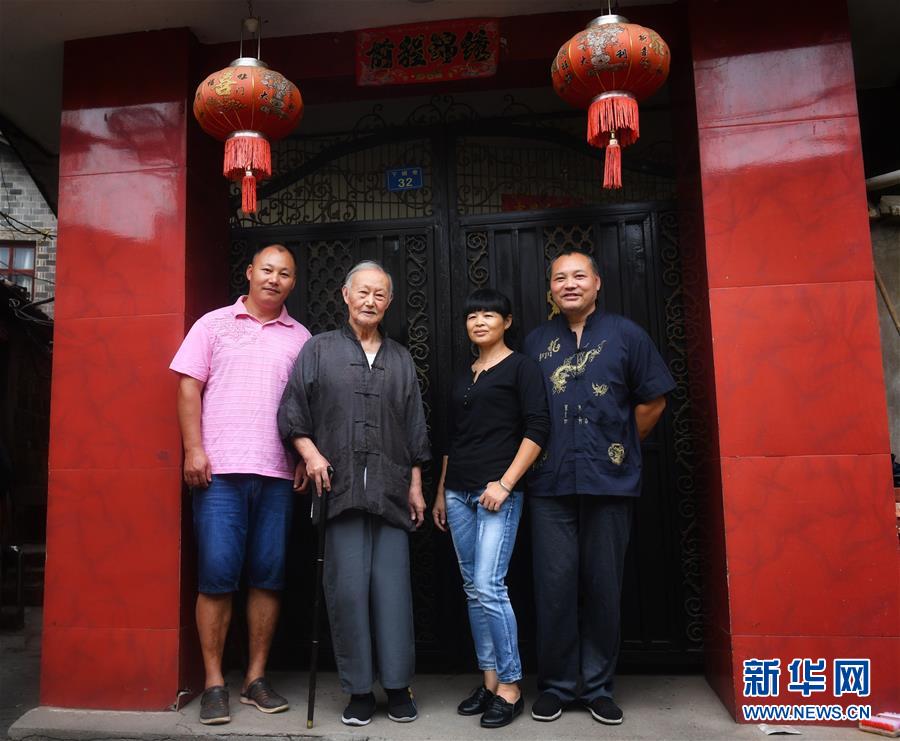 10月12日,丁國(guó)坤(左二)在家門口和他的徒弟們合影。新華社記者胡晨歡攝