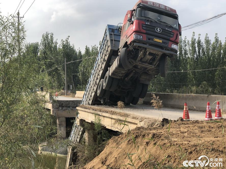 山東濱州:一大貨車壓塌限重4噸橋梁