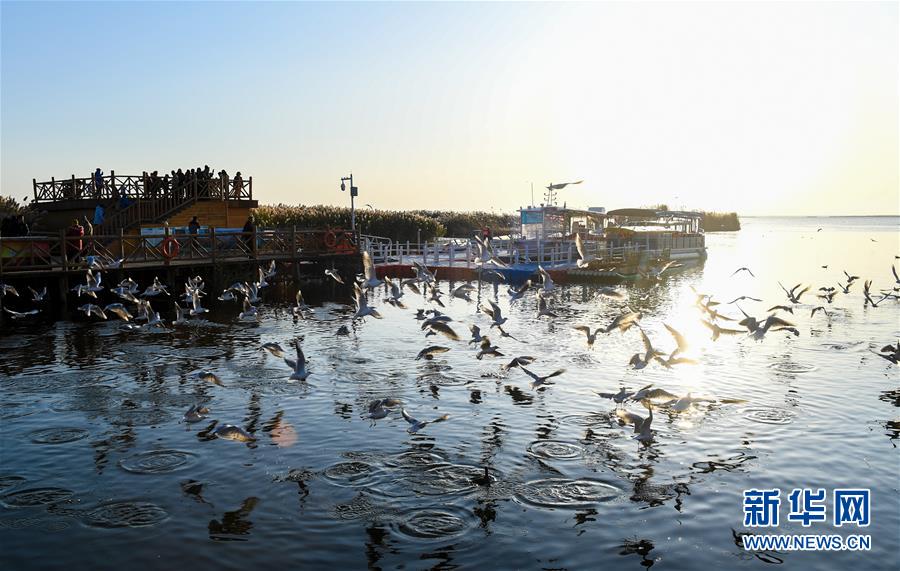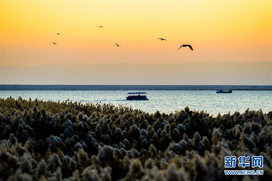 居延海位于內(nèi)蒙古阿拉善盟額濟納旗北部,是我國第二大內(nèi)陸河黑河的尾閭湖。其形狀狹長彎曲,猶如新月,額濟納河匯入湖中。2003年以來,隨著黑河分水工程的實施,干涸已久的東居延海湖盆重現(xiàn)碧波蕩漾的美景,煥發(fā)出勃勃生機。 新華社記者 彭源 攝