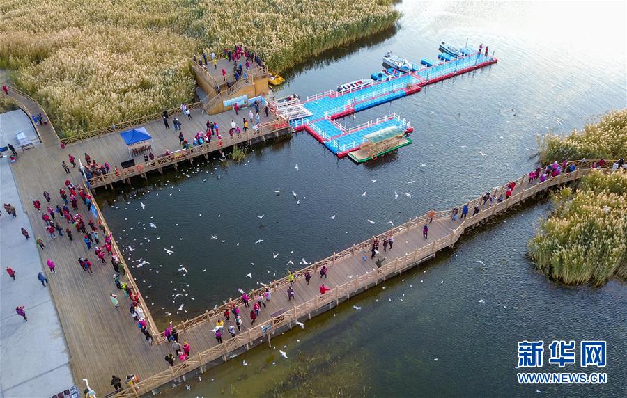 這是10月17日無人機(jī)拍攝的居延海碼頭。 新華社記者 彭源 攝
