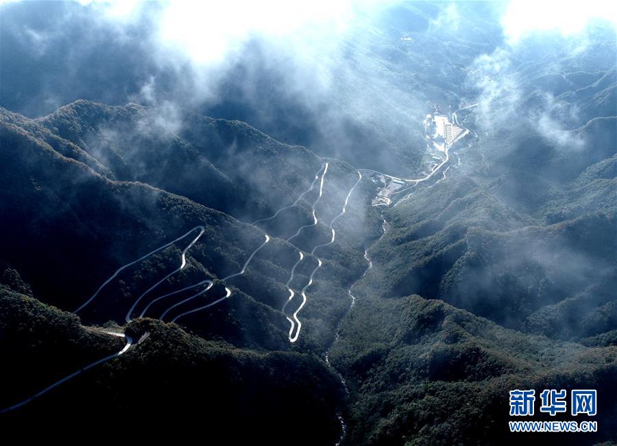 10月17日拍攝的漢中市南鄭區(qū)龍頭山風(fēng)景區(qū)(無人機(jī)拍攝)。 新華社記者 張博文 攝