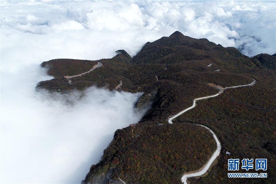 10月16日拍攝的漢中市南鄭區(qū)龍頭山風景區(qū)(無人機拍攝)。  新華社記者 張博文 攝