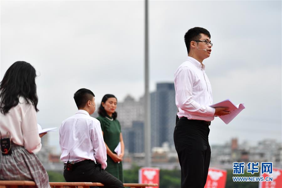10月19日,參與秋祭活動的年輕人在活動現(xiàn)場表演行動劇《激進1949》。 新華社記者 陳斌 攝