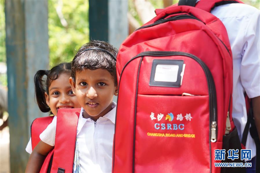 10月18日,在斯里蘭卡漢班托塔地區(qū)的提薩普拉學(xué)校,幾名學(xué)生領(lǐng)到中國企業(yè)贊助的書包。 18日,斯里蘭卡南方省漢班托塔地區(qū)的提薩普拉學(xué)校洋溢著一派歡天喜地的氣氛,全校師生及家長共同慶祝由中國招商局慈善基金會(huì)援建的兩層新教學(xué)樓正式落成,許多學(xué)生當(dāng)天還領(lǐng)到了中國企業(yè)贊助的嶄新書包。附近地區(qū)的其他學(xué)校校長和村民也紛紛趕來參加儀式。 新華社記者唐璐攝