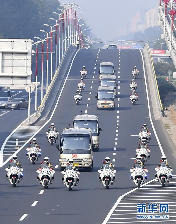 9月29日上午,國家勛章和國家榮譽(yù)稱號(hào)獲得者乘坐禮賓車從住地出發(fā),在國賓護(hù)衛(wèi)隊(duì)的護(hù)衛(wèi)下,前往人民大會(huì)堂參加中華人民共和國國家勛章和國家榮譽(yù)稱號(hào)頒授儀式。 新華社記者 燕雁 攝