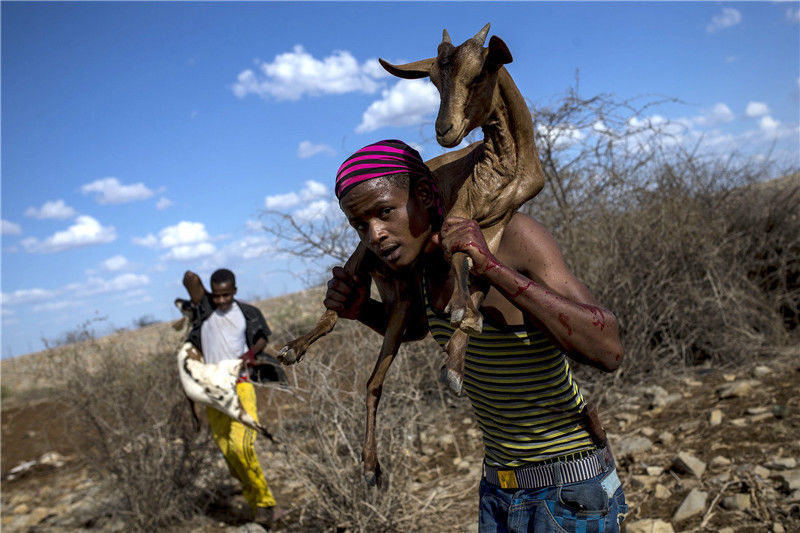 當?shù)貢r間2017年3月29日,索馬里,索馬里海灣州的難民營。索馬里目前正遭遇嚴重旱災,每天超過3000人因干旱逃離家園。