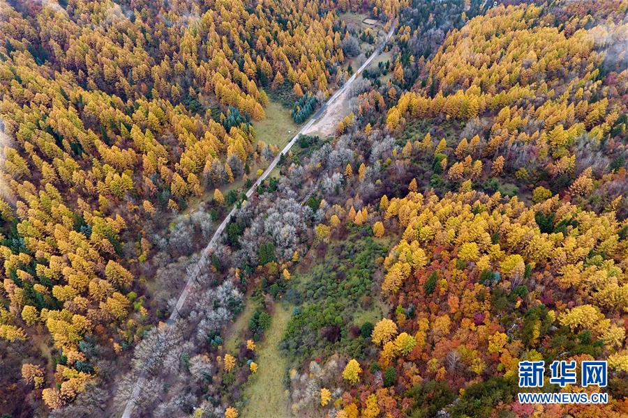 位于山西省交城縣和方山縣交界處的龐泉溝國(guó)家級(jí)自然保護(hù)區(qū)(10月16日無(wú)人機(jī)拍攝)。