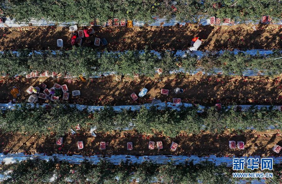10月25日,灤州市王店子鎮(zhèn)農(nóng)民在采摘蘋果(無人機拍攝)。