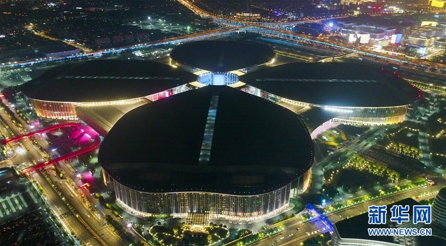 第二屆中國(guó)國(guó)際進(jìn)口博覽會(huì)舉辦場(chǎng)地——國(guó)家會(huì)展中心(上海)(10月27日無(wú)人機(jī)拍攝)。