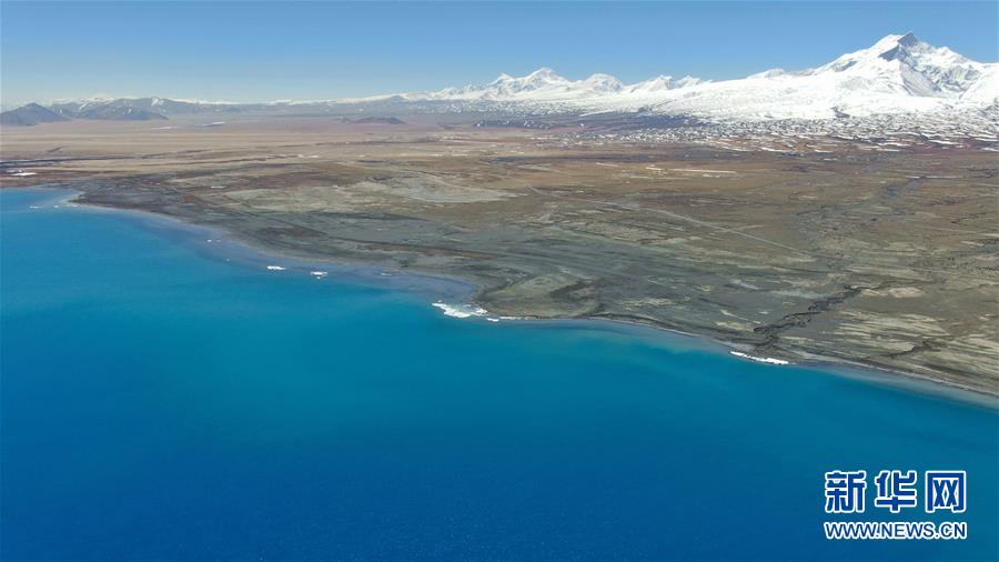 卓奧友峰山腳的佩枯錯(4月26日攝)。