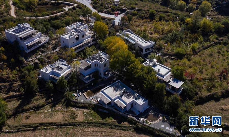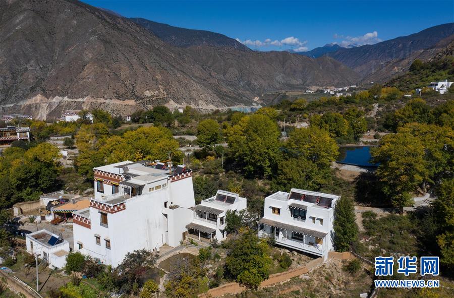 10月29日,四川省鄉(xiāng)城縣的定曲河峽谷的青德鄉(xiāng),民宿“皈院”錯落有致,保留白藏房傳統(tǒng)民居特色(無人機(jī)拍攝)。新華社記者江宏景攝