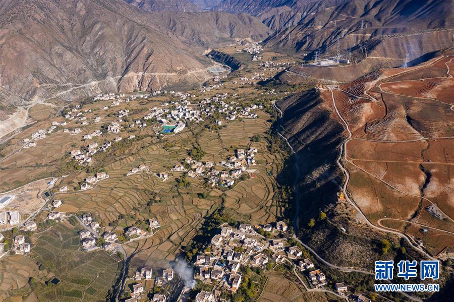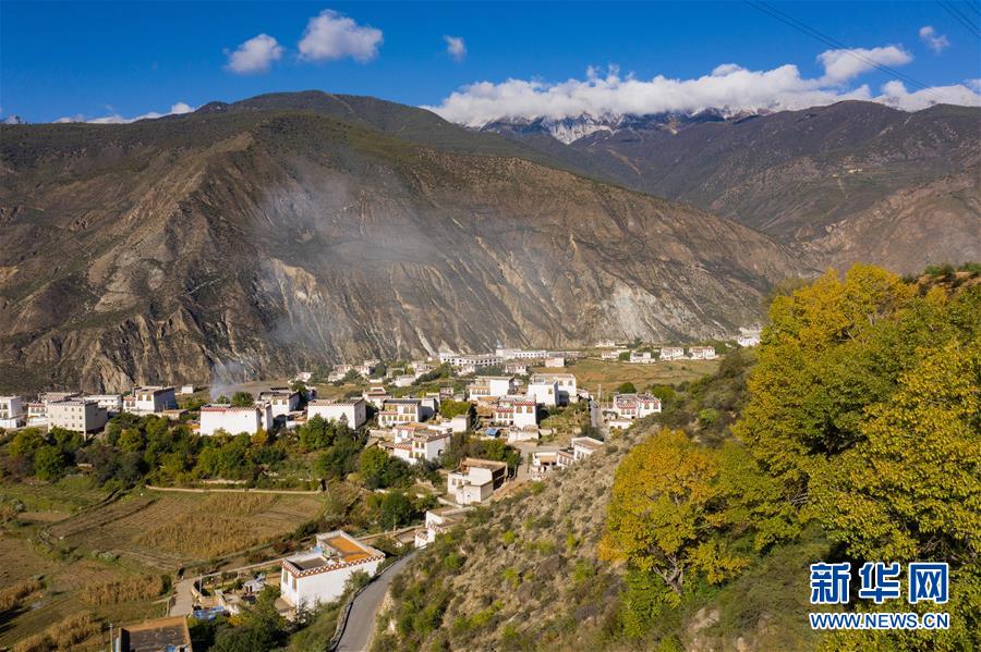 10月29日無人機(jī)拍攝的鄉(xiāng)城縣青麥鄉(xiāng)南吾村藏鄉(xiāng)田園風(fēng)光。新華社記者江宏景攝