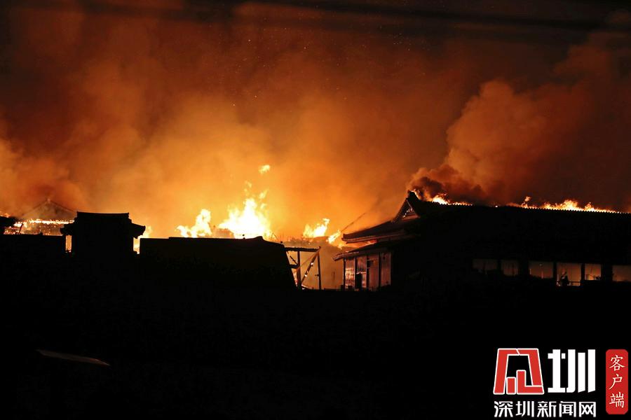 日本沖繩縣那霸市的琉球王國都城遺址首里城火災(zāi)現(xiàn)場。