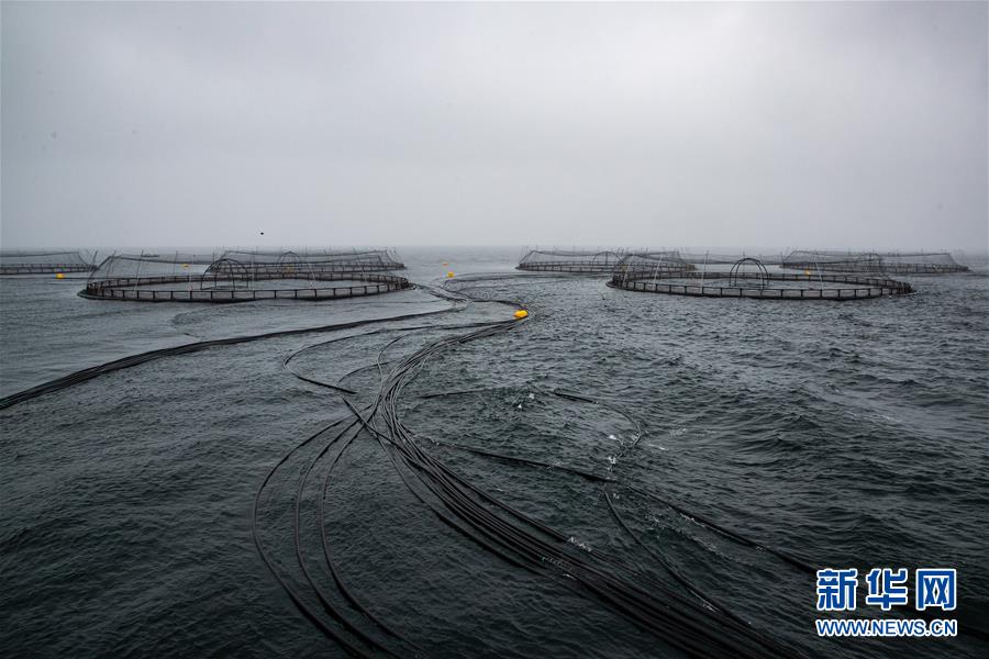 這是9月13日在俄羅斯摩爾曼斯克以北的巴倫支海域拍攝的隸屬于俄羅斯水產(chǎn)養(yǎng)殖公司的鮭魚(yú)養(yǎng)殖場(chǎng)。 新華社記者白雪騏攝