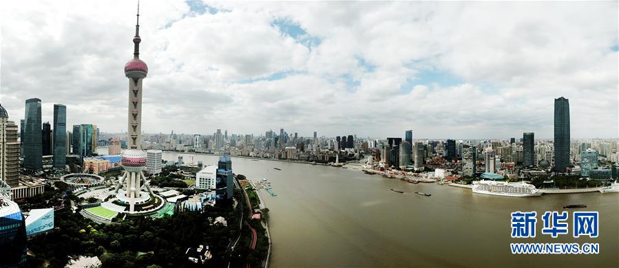 上海浦江兩岸的樓群(10月15日無人機拍攝)。 新華社記者 方喆 攝