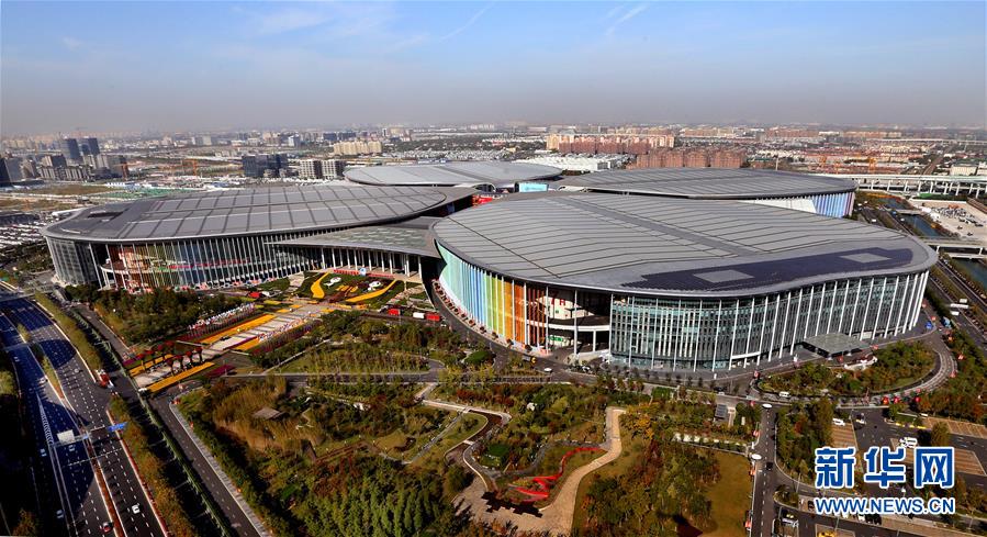 從空中俯瞰國家會展中心(上海)(11月1日無人機拍攝)。 新華社記者 凡軍 攝