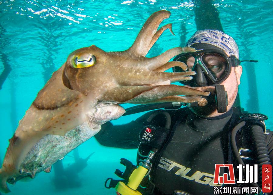 2019年11月12日報道(具體拍攝時間不詳),許多潛水愛好者都會把遇見海底動物當(dāng)作一種幸運,但如果它們過分熱情,你能扛得住嗎?