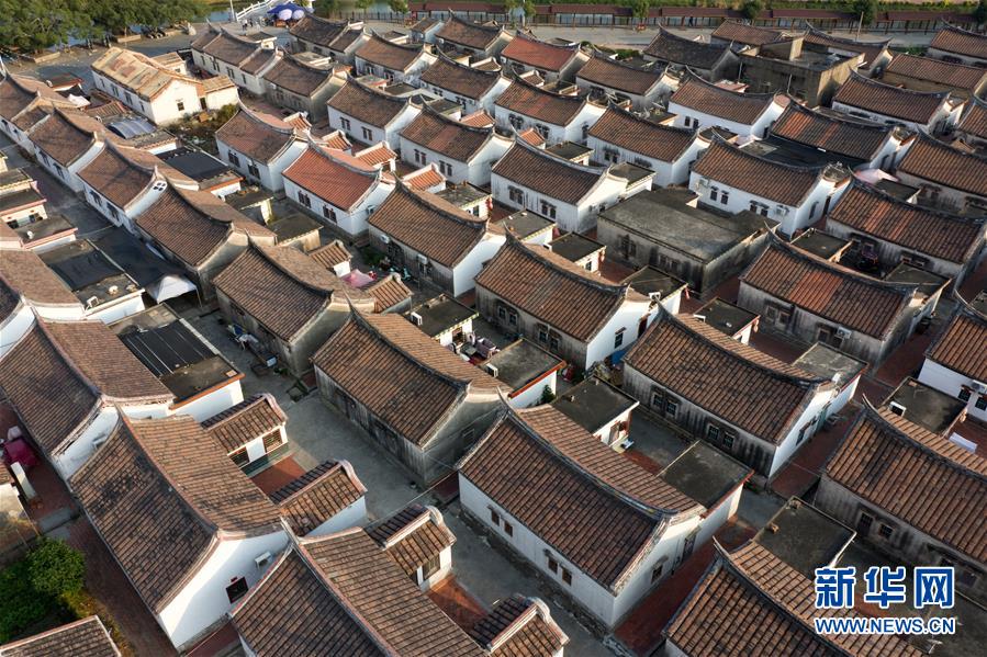 11月14日空中俯瞰閩南水上古村落——埭美村(無人機拍攝)。新華社記者姜克紅攝