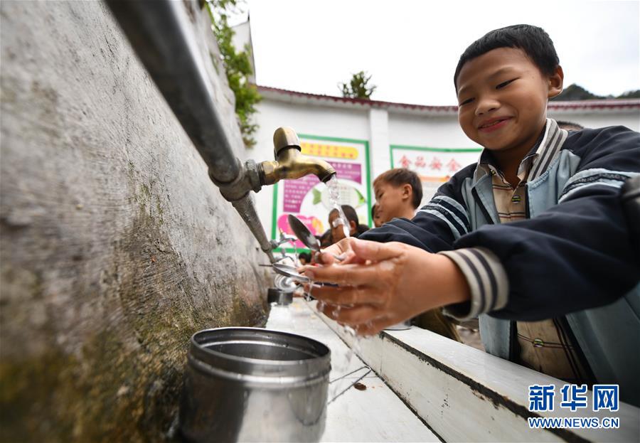 在廣西大化瑤族自治縣板升鄉(xiāng)八好小學(xué),同學(xué)們?cè)谟米詠硭床途撸?1月13日攝)。新華社記者黃孝邦攝