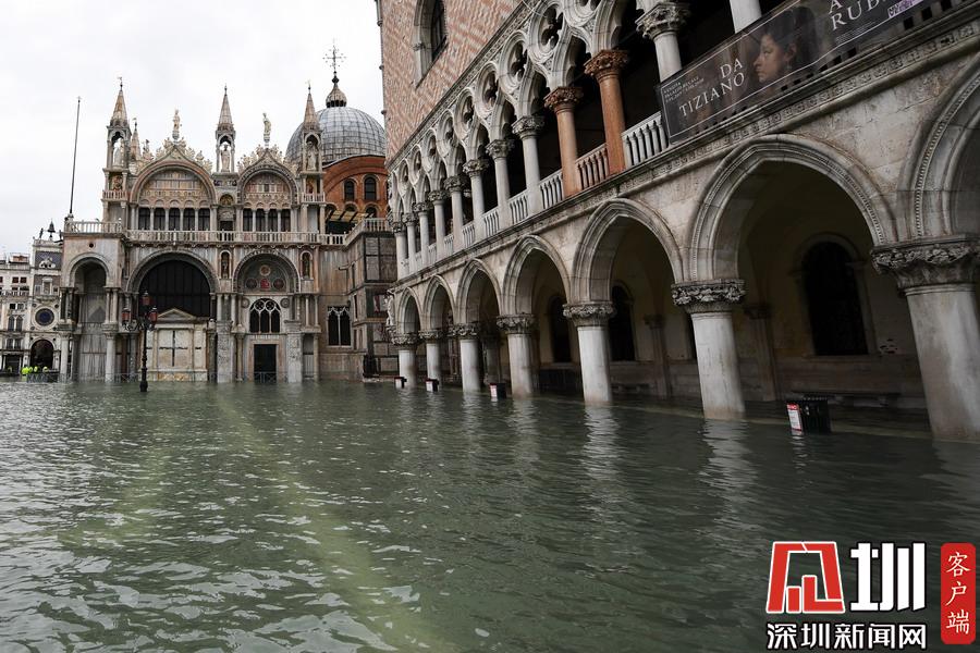 17日,威尼斯迎來一周內(nèi)的第三次罕見大潮,水位再度觸及1.5米。