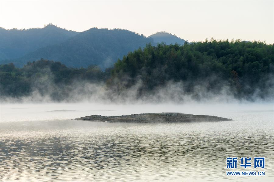 這是11月15日無人機拍攝的安徽黟縣奇墅湖晨景。新華社記者張笑宇攝