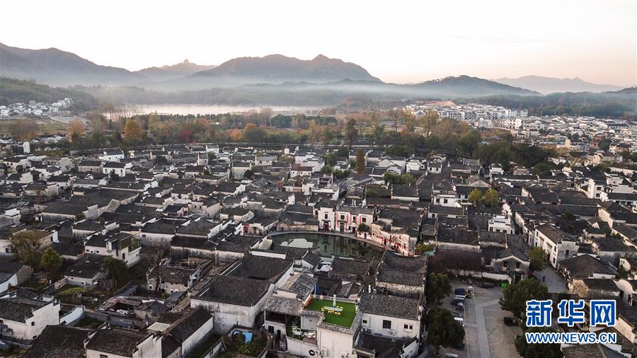 這是11月15日無人機拍攝的宏村風(fēng)景區(qū)晨景。新華社記者韓曉雨攝