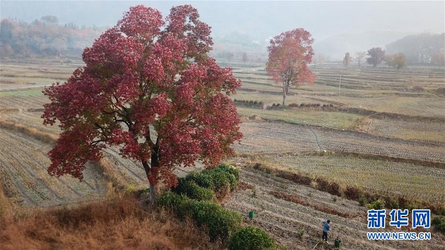 這是11月14日無人機拍攝的安徽黟縣塔川風(fēng)景區(qū)。新華社記者張端攝