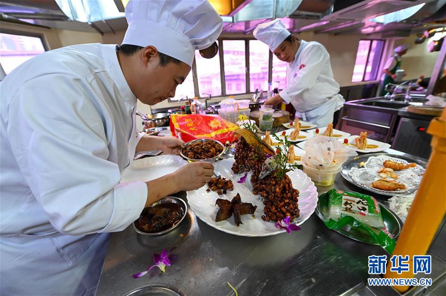 11月20日,在馬來西亞吉隆坡,參賽廚師在制作美食。新華社記者朱煒攝