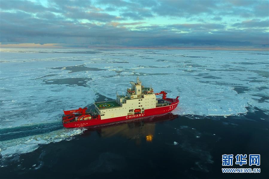 航行在南極圈內(nèi)浮冰區(qū)的“雪龍2”號(hào)(11月19日無人機(jī)拍攝)。新華社記者劉詩平攝