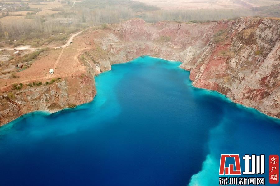 2019年11月25日。安徽省蕪湖市。周長(zhǎng)約1029米已廢棄30多年的白馬礦坑隨著時(shí)間推移,并伴隨石灰?guī)r反應(yīng)、地質(zhì)等多方面原因,礦坑內(nèi)的水質(zhì)逐漸呈強(qiáng)堿性并變成深藍(lán)色。