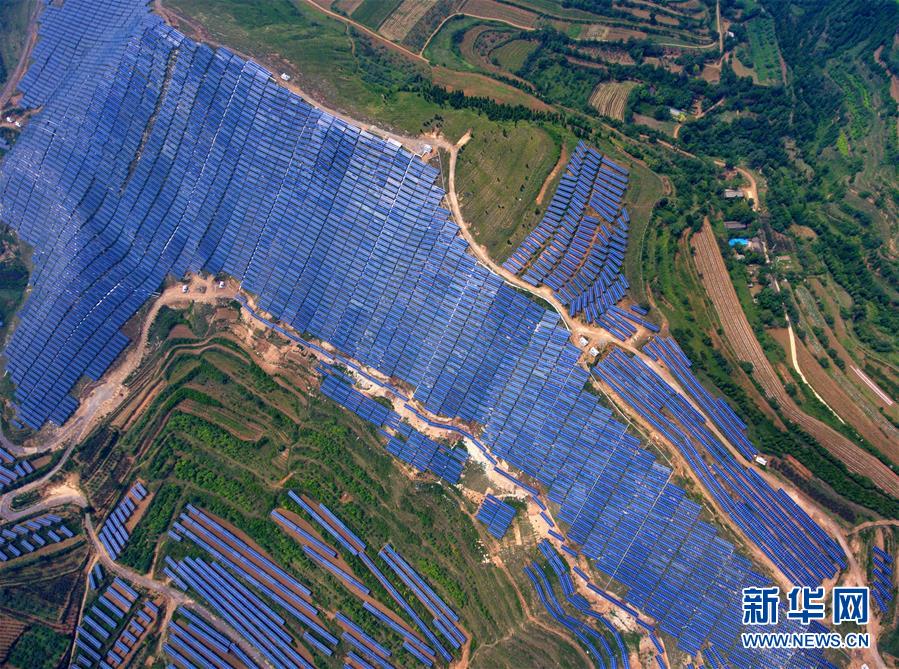 這是7月5日拍攝的山西省運(yùn)城市芮城縣光伏領(lǐng)跑技術(shù)基地(無人機(jī)拍攝)。 新華社記者曹陽攝