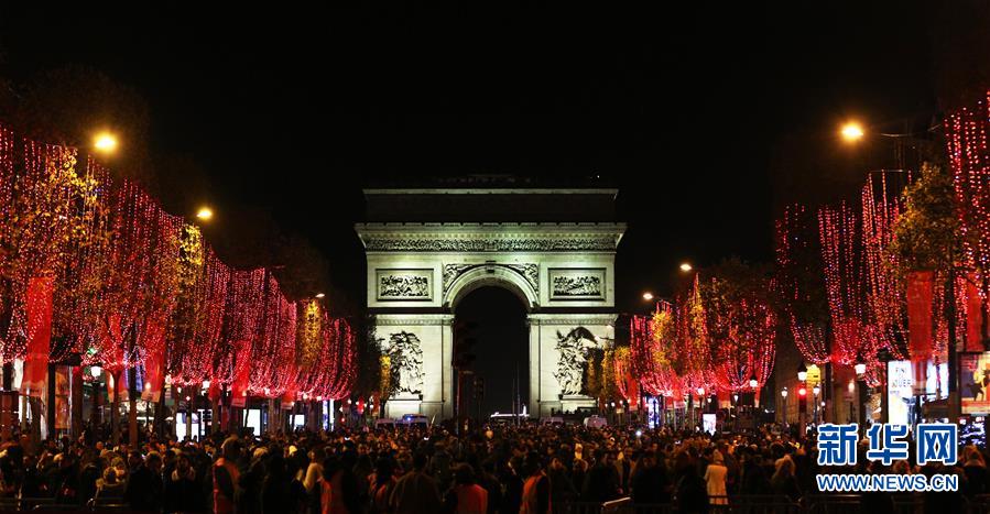 11月24日,在法國巴黎,人們在香榭麗舍大街上參加點(diǎn)燈儀式。當(dāng)日,法國巴黎香榭麗舍大街點(diǎn)亮彩燈迎圣誕。從即日起至1月8日,整條香榭麗舍大街都將被喜慶的節(jié)日燈飾點(diǎn)亮。新華社記者高靜攝