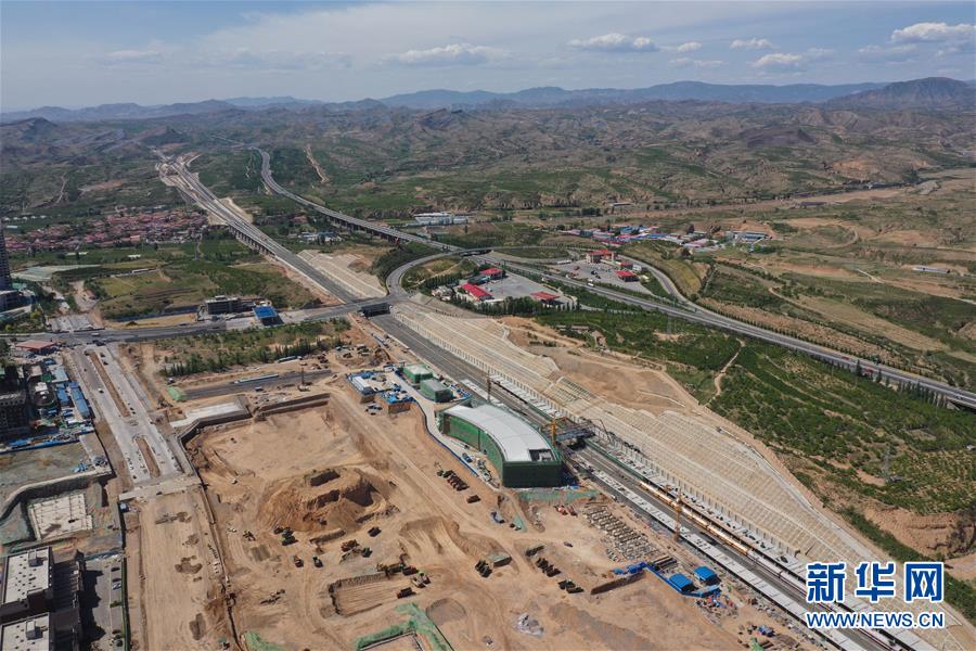 5月28日無(wú)人機(jī)拍攝的建設(shè)中的京張高鐵懷來(lái)站。新華社記者邢廣利攝