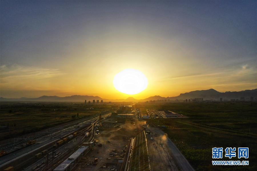 5月28日無人機拍攝的建設(shè)中的京張高鐵懷來站。京張高鐵懷來站位于河北省懷來縣沙城主城區(qū)東側(cè)偏南3.5公里處,目前該站主體工程已經(jīng)完工。新華社記者邢廣利攝
