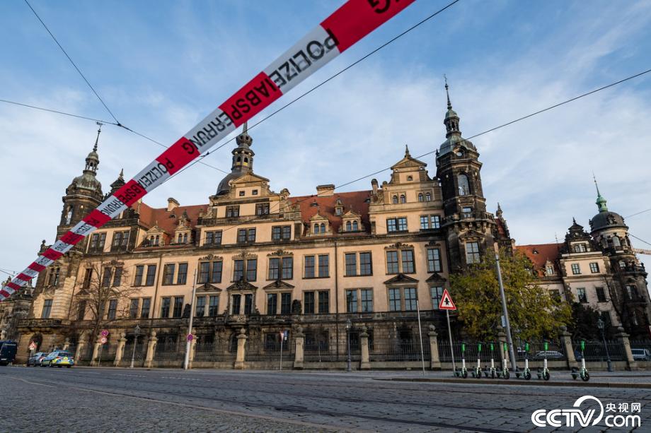 央視網(wǎng)消息:當(dāng)?shù)貢r間2019年11月25日,德國德累斯頓,當(dāng)?shù)氐木G穹珍寶館(Green Vault)遭竊,價值或高達(dá)10億歐元(約77億人民幣)的珠寶、鉆石等被偷走。視覺中國