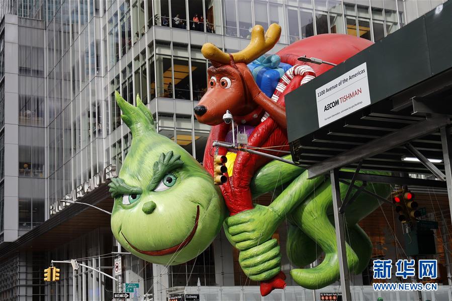 11月28日,在美國(guó)紐約舉行的感恩節(jié)大游行上,卡通氣球行進(jìn)在曼哈頓街頭。 新華社記者 李木子 攝