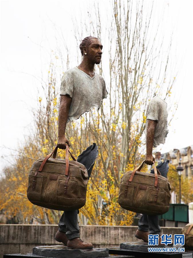 這是11月27日在法國巴黎街頭拍攝的雕塑作品。新華社記者高靜攝