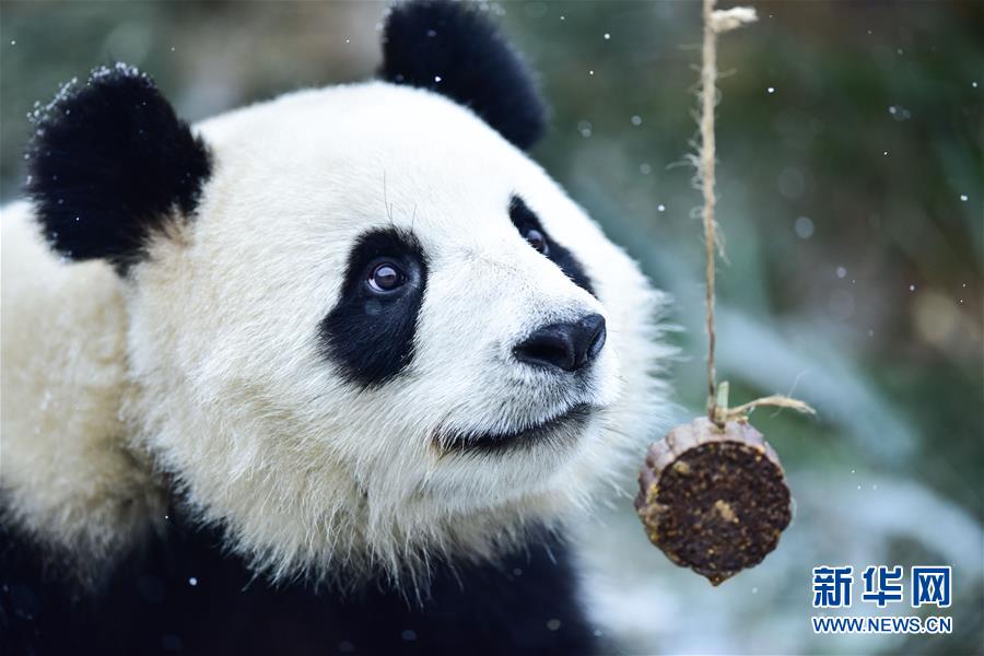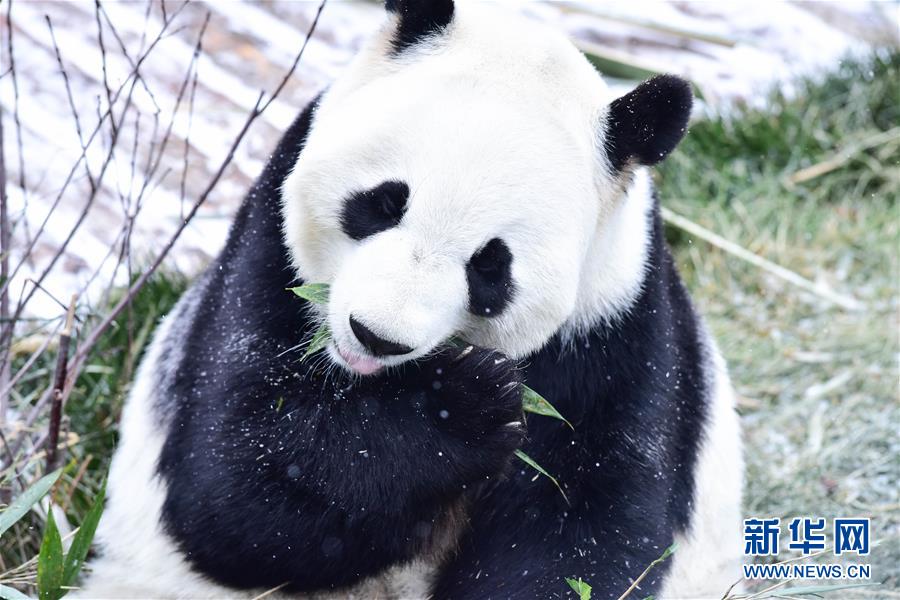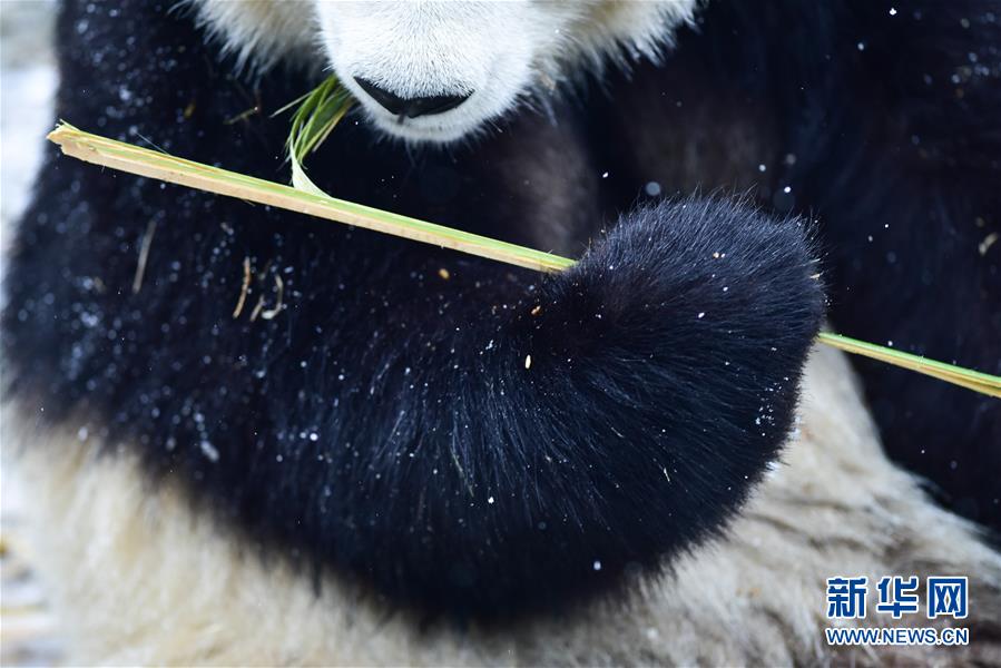 11月29日,在西寧熊貓館內(nèi),兩只大熊貓?jiān)诔灾褡印?當(dāng)日,青海省西寧市迎來降雪,西寧熊貓館四只“萌寵”大熊貓?jiān)谘┨炖锵硎苤灾褡拥臉啡?。?jù)了解,大熊貓生活的適宜溫度在26攝氏度至零下5攝氏度之間,冬季氣溫低于零下5攝氏度時(shí),場館會(huì)啟用保暖設(shè)施。 新華社記者 吳剛 攝