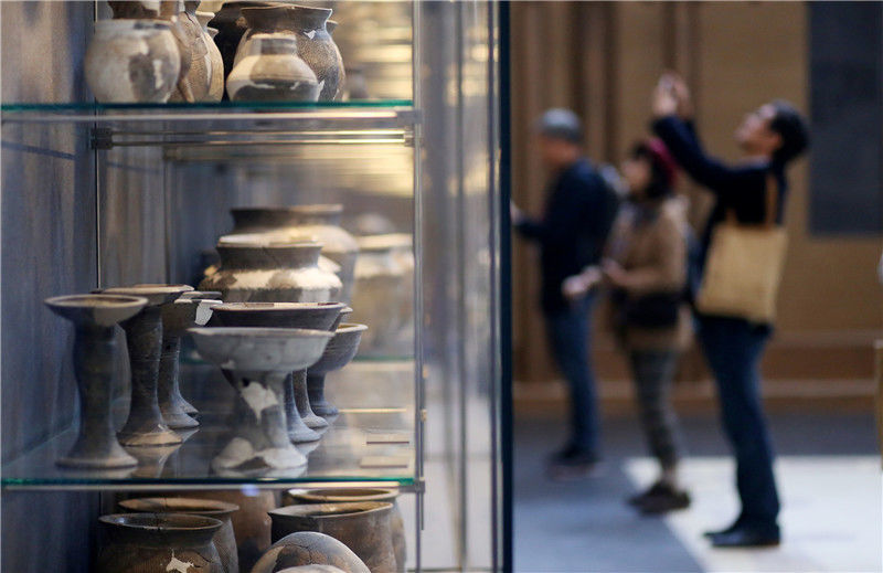 2019年10月19日,河南洛陽(yáng),二里頭夏都遺址博物館。觀(guān)眾在參觀(guān)陶器展。