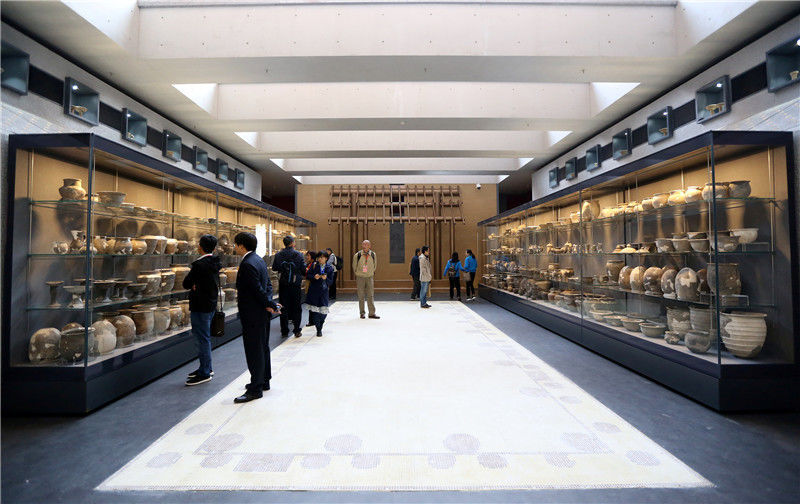 2019年10月19日,河南洛陽,二里頭夏都遺址博物館。展出的二里頭考古成果陶器(部分)。