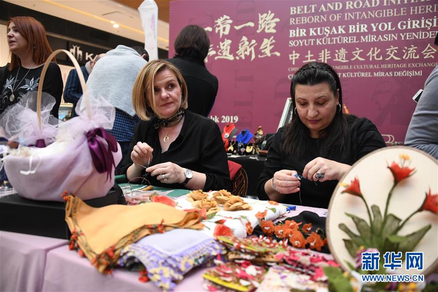 12月6日,在土耳其伊斯坦布爾,土耳其女性非物質(zhì)文化遺產(chǎn)傳承人在交流會(huì)上展示非物質(zhì)文化遺產(chǎn)。新華社記者徐速繪攝