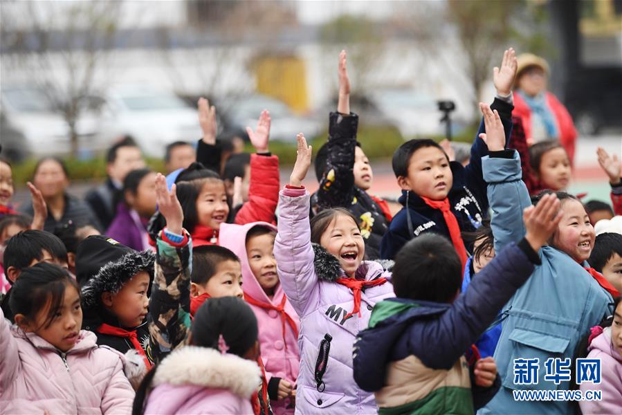 12月12日,中益鄉(xiāng)小學的同學們在文藝演出現(xiàn)場與演員互動。新華社記者 王全超 攝