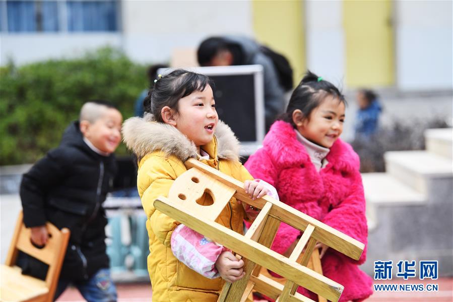 12月12日,中益鄉(xiāng)小學的同學們搬著小椅子前往操場觀看文藝表演。新華社記者 王全超 攝
