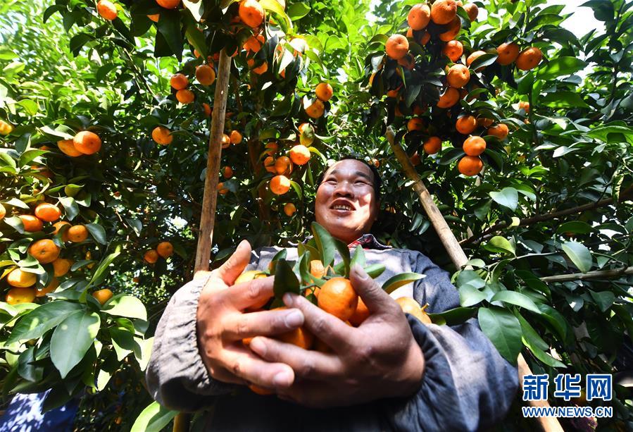 12月11日,廣西柳州市鹿寨縣四排鎮(zhèn)四排村村民徐金勝在果園里采收砂糖橘。新華社記者 黃孝邦 攝