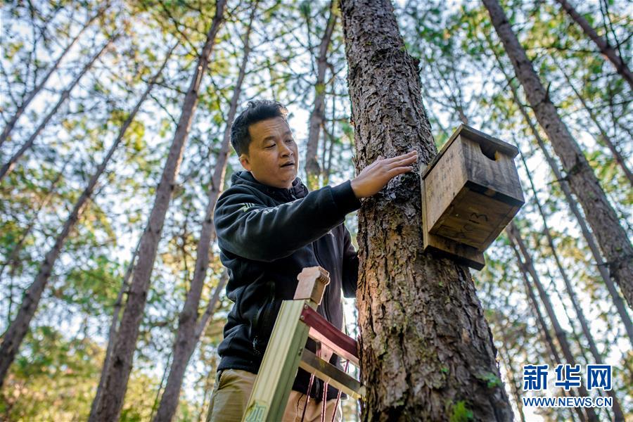 羅康在哀牢山的松樹林里查看上一批人工巢箱的鳥類入住情況(12月12日攝)。  31歲的羅康是云南省瀾滄縣人,從事鳥類生態(tài)學(xué)研究已有8年時(shí)間。作為中科院鳥類繁殖學(xué)的在讀博士,羅康離開城市,一頭扎進(jìn)哀牢山深處,以森林為家,與鳥兒為伴。 羅康在研究過程中發(fā)現(xiàn),由于松林內(nèi)天然樹洞很少,導(dǎo)致食蟲鳥類(主要為洞巢鳥)的繁衍與生存質(zhì)量受到較大影響。查閱大量資料后,他決定學(xué)習(xí)西方國家應(yīng)用比較廣泛、已有100多年歷史的人工巢箱,為這些鳥兒搭建“別墅”。 目前,羅康已安置人工鳥巢500余個(gè),共有遠(yuǎn)東山雀、綠背山雀、黃頰山雀等7種鳥類入住,總體入住率約25%。他還在部分人工巢箱里裝上攝像頭,用于研究鳥類的生活習(xí)性。 “通過對(duì)人工鳥巢里的視頻錄像進(jìn)行分析,我們發(fā)現(xiàn)入住鳥類以松毛蟲喂食幼鳥的比例非常高。”羅康表示,安置人工鳥巢不僅能幫助鳥類在森林中安家落戶、繁衍生息,也能有效防治森林病蟲害。明年一月底前,他將再安置500個(gè)人工巢箱。 新華社記者 胡超 攝