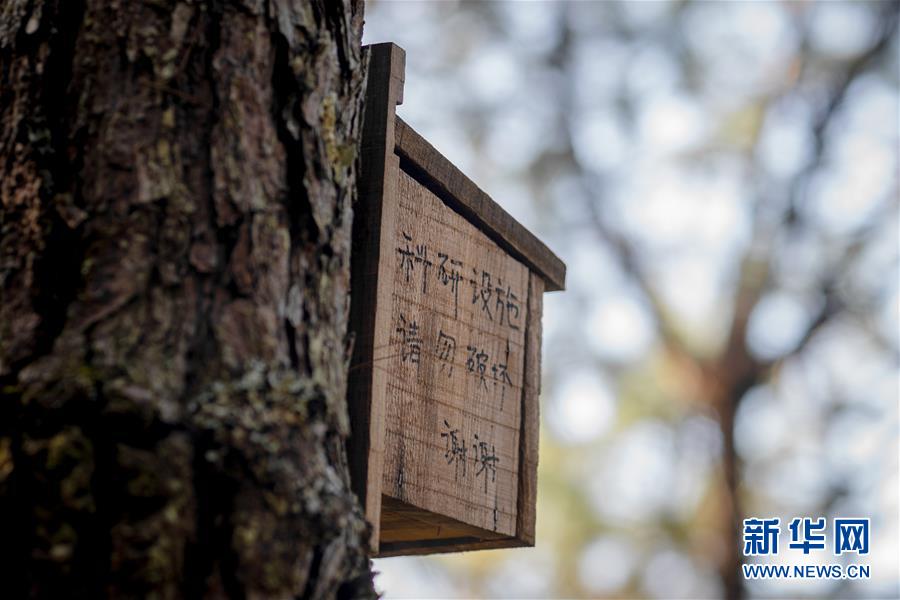 這是羅康2018年在哀牢山的松樹林里安裝的人工鳥巢(12月12日攝)。 新華社記者 胡超 攝