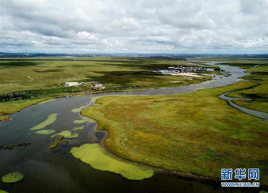 8月28日無人機(jī)拍攝的呼倫湖國家級自然保護(hù)區(qū)。新華社記者任軍川攝